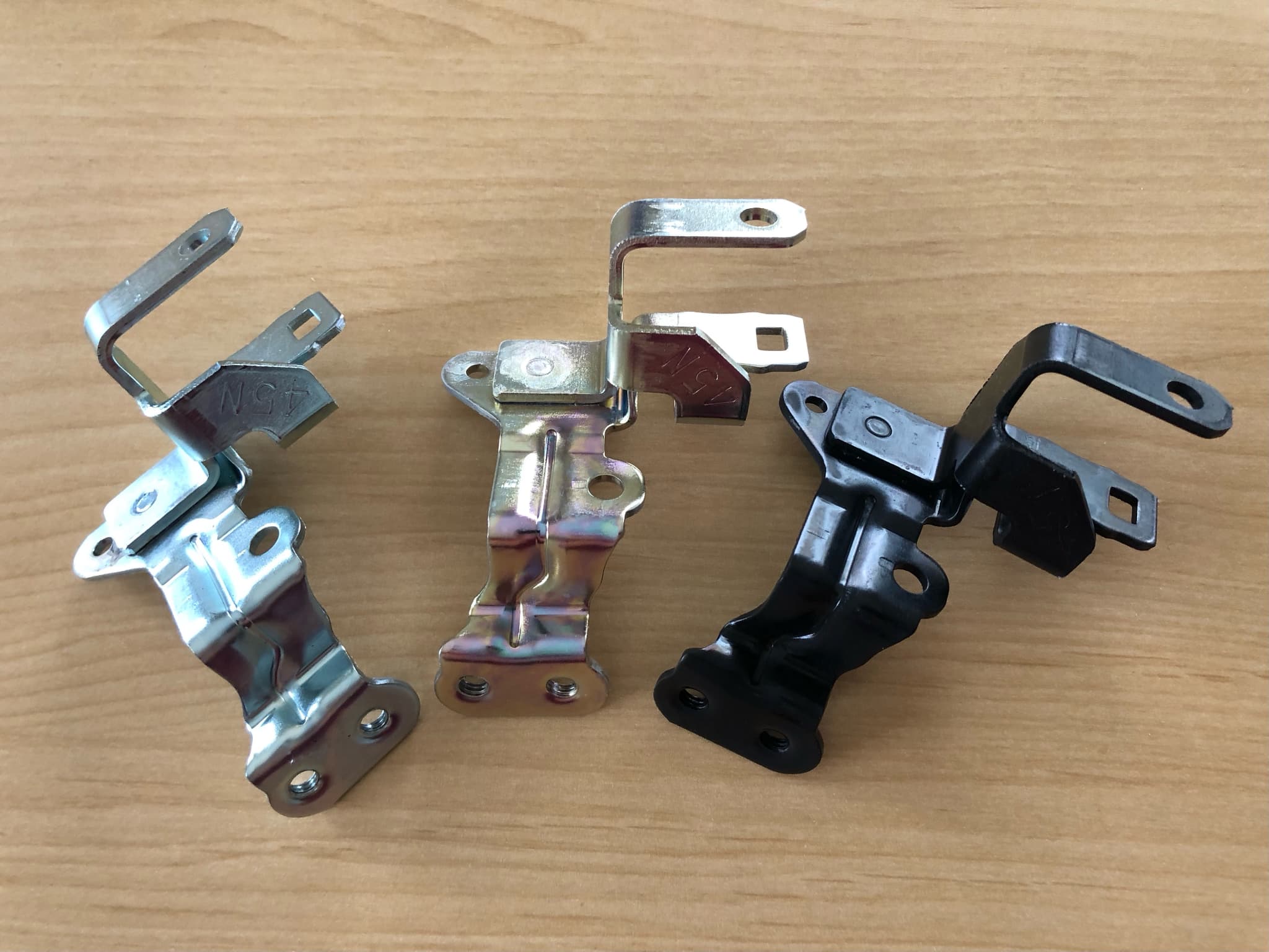 電気亜鉛メッキ後、ユニクロ(光沢クロメート)処理を行い黒色に有色処理を施しました。